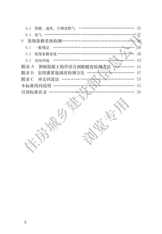 除總則、術(shù)語(yǔ)、基本規(guī)定外,標(biāo)準(zhǔn)還對(duì)裝配式混凝土結(jié)構(gòu)檢測(cè)、裝配式鋼結(jié)構(gòu)檢、裝配式木結(jié)構(gòu)檢測(cè)、外圍護(hù)系統(tǒng)檢測(cè)、設(shè)備與管線系統(tǒng)檢等作出了明確的規(guī)定。
