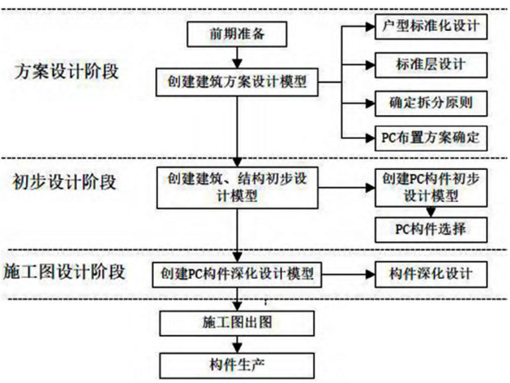 裝配式建筑的設(shè)計(jì)程序分為方案設(shè)計(jì)、初步設(shè)計(jì)、施工圖設(shè)計(jì)3個(gè)階段,如圖1所示。