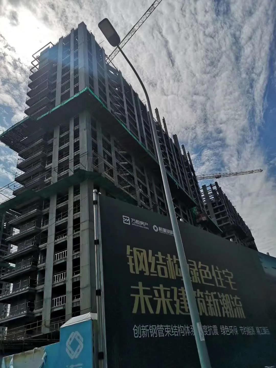本篇由杭蕭鋼構供圖。2020年拍攝于施工現場,向分享單位表示感謝。以下來自杭蕭鋼構對鋼管混凝土束組合結構體系的介紹:鋼管混凝土束組合結構體系,是將鋼結構裝配式優勢和混凝土保溫節能效果有效的結合在一起。既起到快速建造、質量可控,又能降低鋼結構的建造成本。