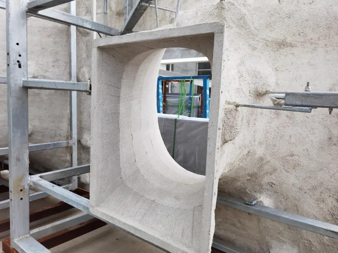 GRC不僅僅是建筑外立面線條的解決方案之一,也是建筑外立面圍護(hù)系統(tǒng)的解決方案之一。GRC外圍護(hù)系統(tǒng)一般由鋼龍骨、GRC構(gòu)件(外墻)、保溫層、內(nèi)墻石膏板(內(nèi)墻)組成。
