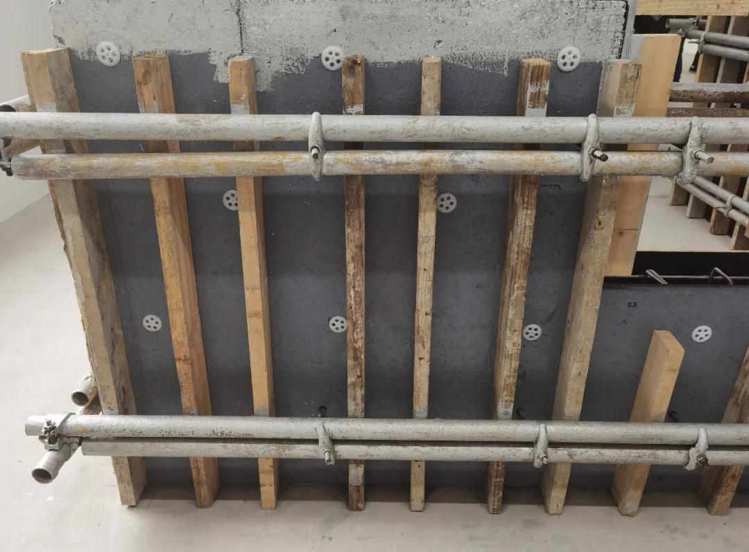該系統使用SW-硅墨烯A級不燃保溫板材做為現澆混凝土構件的外模板使用,同步安裝保溫板與后澆混凝土的連接錨固件,實現保溫與結構的一體化。