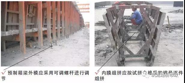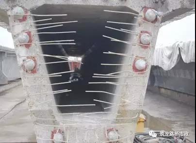 1) 箱梁預制時應將伸縮縫預埋筋、泄水孔、防撞護欄預埋筋、吊梁孔(環)、鋼束孔道等設計要求的預埋件全部按位置準確裝好。