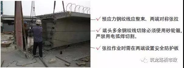 3) 預應力筋張拉時,正面不能站人,并設置擋板和警示標牌。