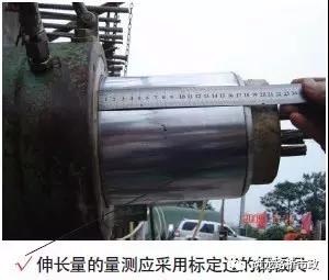 3) 張拉采用張拉力與伸長量雙控制的方法,不能直接量取千斤頂的油缸變位量,一般采用兩端對稱張拉,張拉計算公式按L實=L-L1+(L1'-L1)(L1張拉至20%ok(15%ok)時千斤頂的活塞長;L張拉至100%δk時千斤頂的活塞長;L1'張拉至40%δk(30%δk)時千斤頂的活塞長)。
